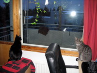 osapuolia olivat kissa, sanomalehti ja keittiön tuoli... Ei siitä