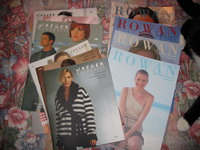 Minä taas sain laatikon sisällön ja olin hyvin tyytyväinen. Rowanilla oli - ja on nytkin - webbisivuillaan tarjous, johon sorruin! Laatikossa oli neljä Rowanin lehteä (nrot 25, 28, 30 ja 31), neljä Jaegerin lehteä (nrot 5, 7, 8 ja 9) ja neljä Jaegerin esitettä (JB10 - Chamonix, JB13 - Mohair Art, JB14 - Natural Fleece ja JB15 - Trinity).