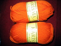 Olisin vain kaivannut hieman päähäntaputusta ja "oi, onko siinä oranssia, voi kuinka ikävää" -lauseen enkä "se on Käsinvärjättyä Artesaanilankaa" -selitystä. En halua selityksiä, haluan sympatiaa! (Hyvä on, arvoisat lukijat, ruoskikaa nyt mua. Antakaa piiskaa väsyneelle ja nälkäiselle ihmiselle. <g>)