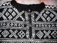 The back and front and the neckband of Jussi's Almost Setesdal sweater are finished. (Jussi wants to choose the clasps himself next.) I decided to knit the polo collar for Liisa's ribbed sweater next.