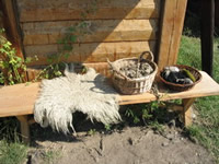 viikinkikylässä Spinning stuff in the viking village in Tofta |