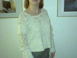 Pujota pääntielle ja hihan kapeimpaan kohtaan ohutta kuminauhaa kiristämään hihaa tiukemmalle ja pääntietä pienemmäksi, jos tarpeen. Hihat ovat pitkät, joten kuminauhan avulla ne saa nostettua ylemmäs, samoin pääntie saattaa olla hieman avara.