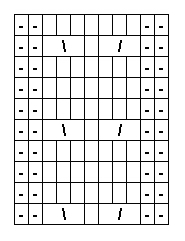 \ = nosta 1 s apupuikolle neuleen eteen, neulo 2 s oikein, neulo 1 s oikein apupuikolta