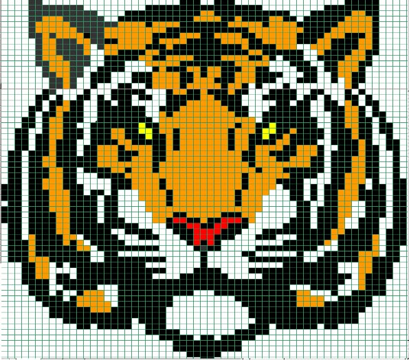 Kirjo tiikeri etukappaleeseen haluamaasi kohtaan silmukoita jäljitellen.