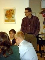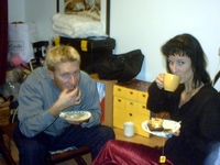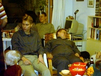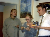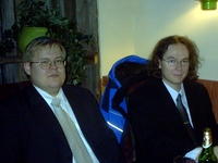Ensin pari kuvaa Cantina Westistä, jossa poikkesimme hääpäivän iltana. Vasemmalla Sami & Jouko, oikealla Mikko the bestman ja Jussi, tuore aviomies. Kotona 15.11.2003Päivän sankarit... siis kahvinkeittäjät