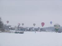 A hot air balloon race in Trakai
