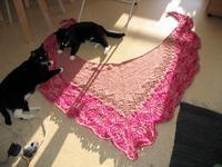 Actually, I did not have enough yarn. I had to leave out the last row of the lace pattern but I think it doesn't matter that much. Also a note from the editor: in the pictures the scarf is pre-blocking.