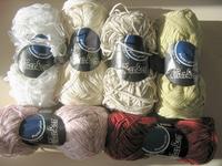 These are all 100 g balls of cotton or viscose or blends. It was so hot that I did not want to look at wool or mohair! I got two balls of each of these, so 12 balls of yarn altogether. I think they will be scarves. The prices were from 50 to 77 korunas per ball, about 2-3 euros. (1 euro = about 27 korunas)