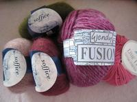 The pink Cotton Stretch is from the Vihreä vyyhti sale basket, only i € per ball. Who could resist that? The mohair yarns and the Wendy Fusion are from Priima's birthday sale.