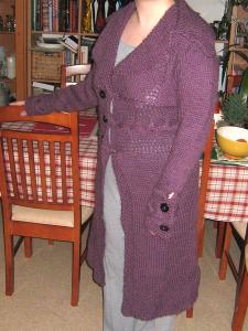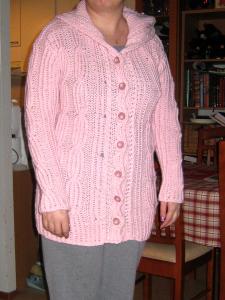 The Polar cardigan ate up 1000 g of Rowan Polar. The yarn is soft and loosely spun, so it has somewhat pilled but not in a disturbing amount and the yarn has taken ripping quite well. The surprise was when I washed the cardigan, the yarn loosened up dramatically. Of course the weight of the cardigan itself stretches it even when drying it flat and the yarn is not of the sturdiest kind, so I could have anticipated that. Optimistically I did expect, though, that I could lose some weight and get a trapeze-shaped double-breasted cardigan with the cable above the waistline. That did not happen and I got a single-breasted cardigan with a cable on the waist. Well, I do like the cuffs!