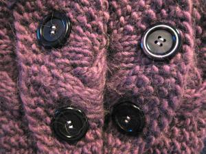 The buttons of the Mambo cardigan and the Mambo cardigan with buttons. Warm and surprisingly soft!