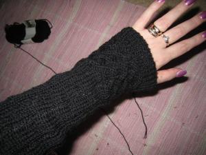 Maija cardigan's first sleeve has reached the elbow and beyond. The expert knitting council in the Espoo knitting meet-up assured that a cable in the cuff would look nice, so I decided to try that. The council was right! After the cable the sleeve would have continued smoothly in knit 4, purl 4 rib. However, that was not ok because the rib in the front pieces was knit 4, purl 2. So I decreased the extra purl stitches, suspecting that it would not look good and hoping that it would. To my surprise it did turn out fine! The decreases did not make the sleeve look like a trumpet or malformed in some funny way. Me likey!