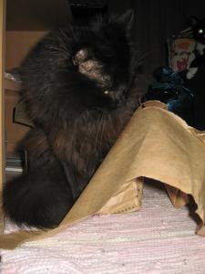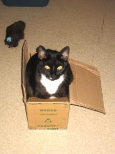 Hassu kissa, mikäköhän huvi on laatikkoon ahtautumisessa :)