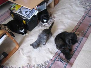 The cats checked the new carpet. I wonder how many days... hours... minutes it remains clean?