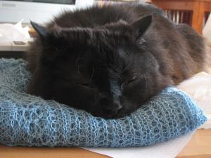 Takku on selvästikin saanut mieleisensä päänalusen, kyllä kelpaa lepuutella kasmir-silkin päällä.