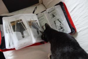 Mä täällä ihailen tota lankahyllyä, miten se voi olla noin järjestyksessä ja nuo värit Mutta tuo puikko juttu on kätevä, mun on saatava ehdottomasti samanlainen, ongelma on nimeltä kissa syö pyöröjen kaapelit.