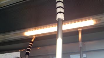I meant to show you how the green Wollmeise gloves are progessing and tell something about the square needles. That'll have to wait now because something else caught my attention. On my way home I noticed this in the bus: