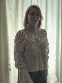 Ompele neuleen osat yhteen: kokoa hihat, ompele olkasaumat, sivusaumat ja hihat. Yhdistin pitsineliöt toisiinsa virkkaamalla ketjusilmukoita ja kiinnittämällä ketjusilmukat aina säännöllisin välein neliöiden reunaan.